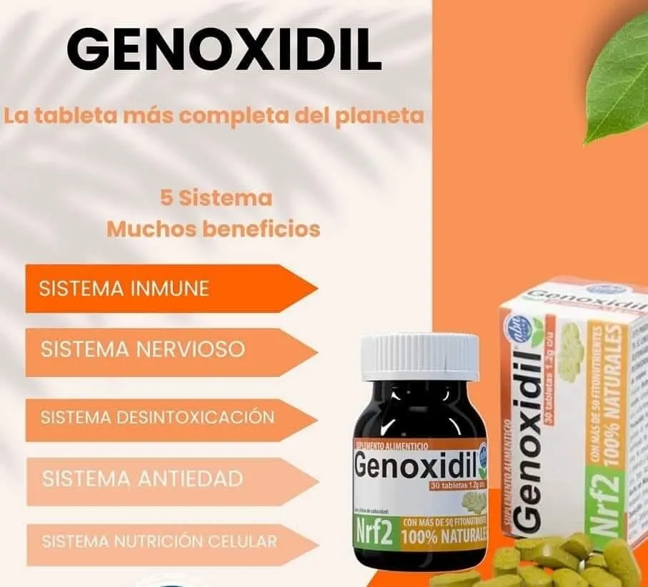 | BENEFICIOS Estimula la regeneración celular. Refuerza las defensas naturales del cuerpo. Contribuye a un metabolismo más eficiente. Ideal para quienes buscan más energía, vitalidad y bienestar integral. Pruébalo y siente la diferencia Con solo una tableta diaria, comienza a experimentar los beneficios de una nutrición celular inteligente. ¡Haz de Genoxidil parte de tu rutina diaria y dale a tu cuerpo lo mejor. |
