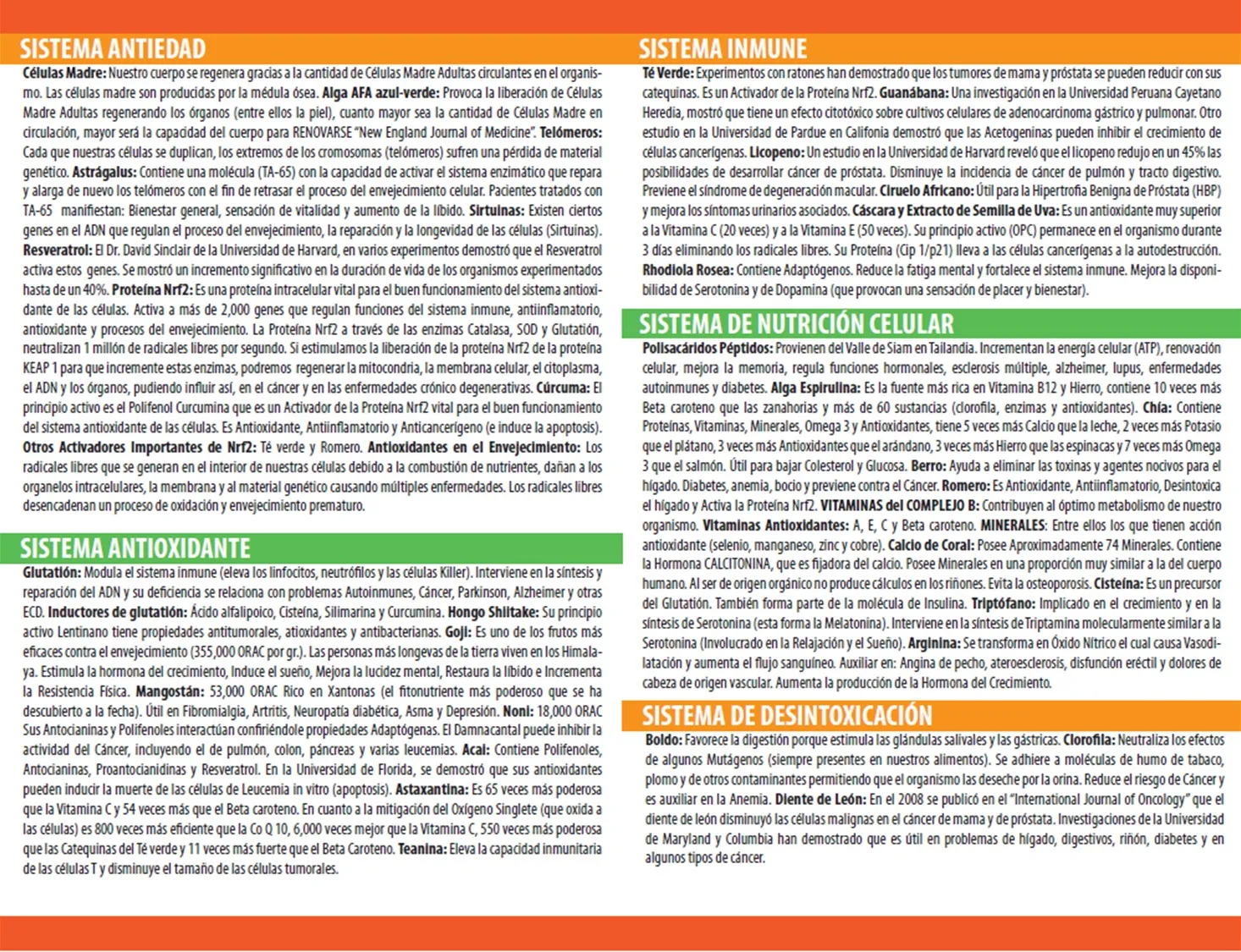 CARACTERÍSTICAS: Aporta antioxidantes de origen natural. Complementa la dieta con fitonutrientes y extractos herbales. Ideal para quienes buscan acompañar su rutina de alimentación saludable. MODO DE USO: Tomar 1 tableta al día con un vaso de agua. • Este producto es un suplemento alimenticio, no es un medicamento. • No debe utilizarse como sustituto de una dieta equilibrada. • No se recomienda en embarazo, lactancia ni en menores de 12 años. • Mantener en lugar fresco y seco, fuera del alcance de los niños. |