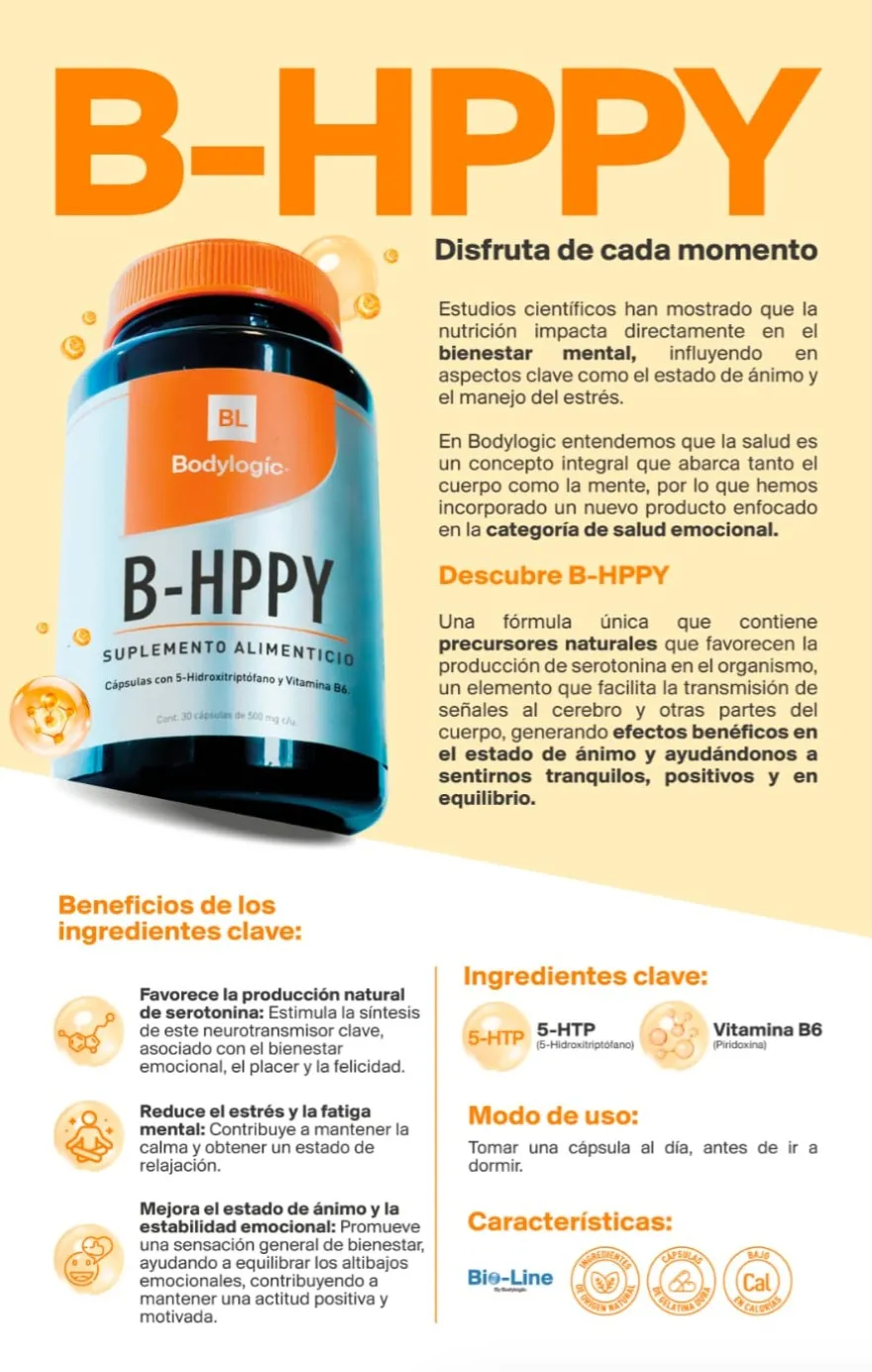 Favorece la producción natural de serotonina: Estimula la síntesis de este neurotransmisor clave, asociado con el bienestar, el placer y la felicidad.