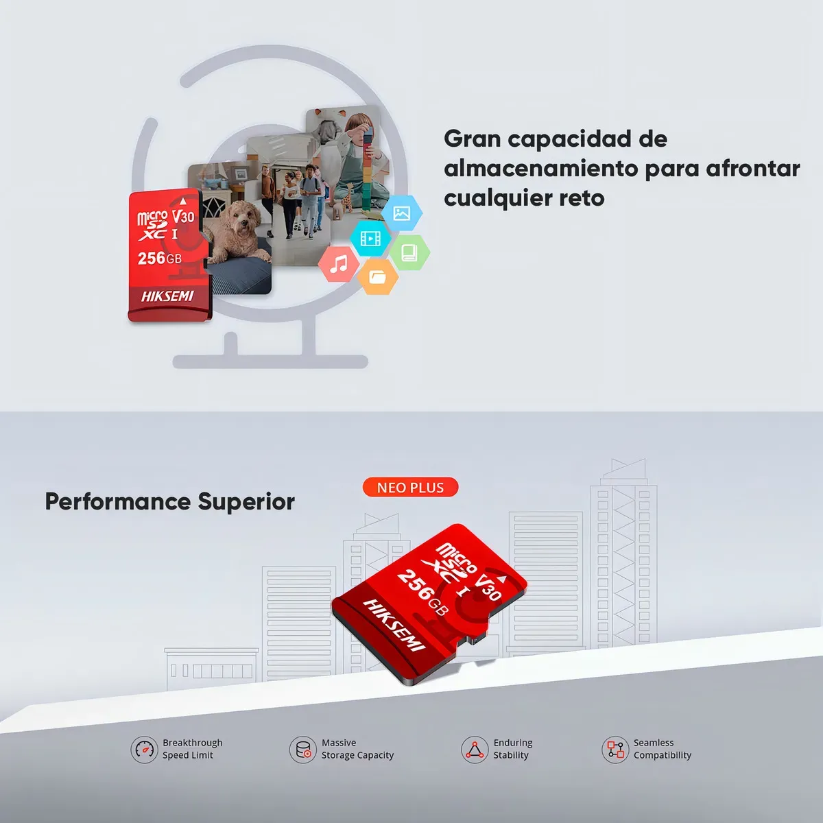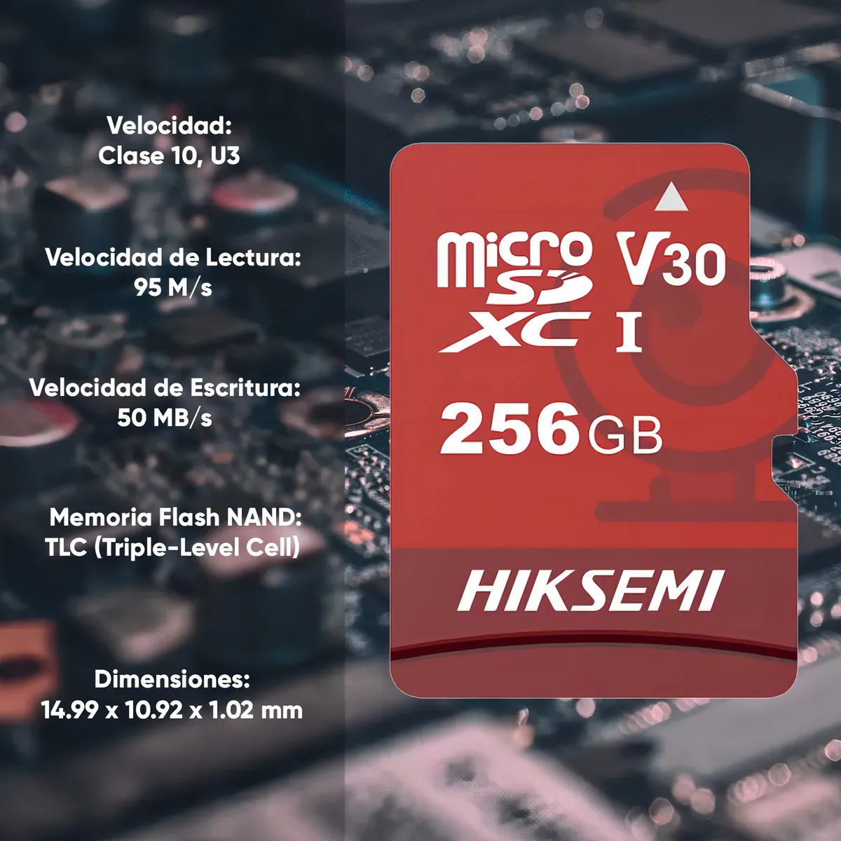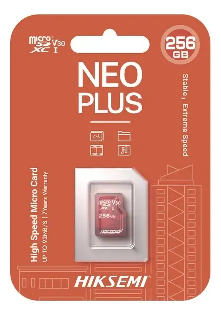 Hiksemi Memoria microSD Clase 10 de 256 GB Especializada Para Videovigilancia (Uso 24/7) Compatibles con cámaras HIKVISION y Otras Marcas 95 MB/s Lectura 55 MB/s Escritura Gran Capacidad: 256GB de almacenamiento, ideal para largas sesiones de grabación de videovigilancia. Rendimiento Rápido: Lectura de hasta 95 MB/s y escritura de hasta 55 MB/s. Diseño para Uso 24/7: Fiable para videovigilancia continua, garantizando la seguridad y protección de datos. Alta Compatibilidad: Compatible con dispositivos microSDXC y adaptable a tamaño estándar con un adaptador SD. Performance Superior Las memorias micro SD NEO PLUS de Hiksemi ofrecen un rendimiento excepcional con alta velocidad de transferencia de datos. Permiten almacenar hasta 512GB de archivos, brindando amplia capacidad para fotos, videos y documentos. Son resistentes a ambientes agresivos, ideales para uso en situaciones exigentes al aire libre. Además, son compatibles con una amplia gama de cámaras, asegurando su versatilidad y utilidad en múltiples escenarios. ¡Hecha para Soportar de Todo! La memoria micro SD NEO PLUS de HIKSEMI es resistente al agua, golpes y electricidad estática, garantizando la máxima seguridad durante su instalación. |