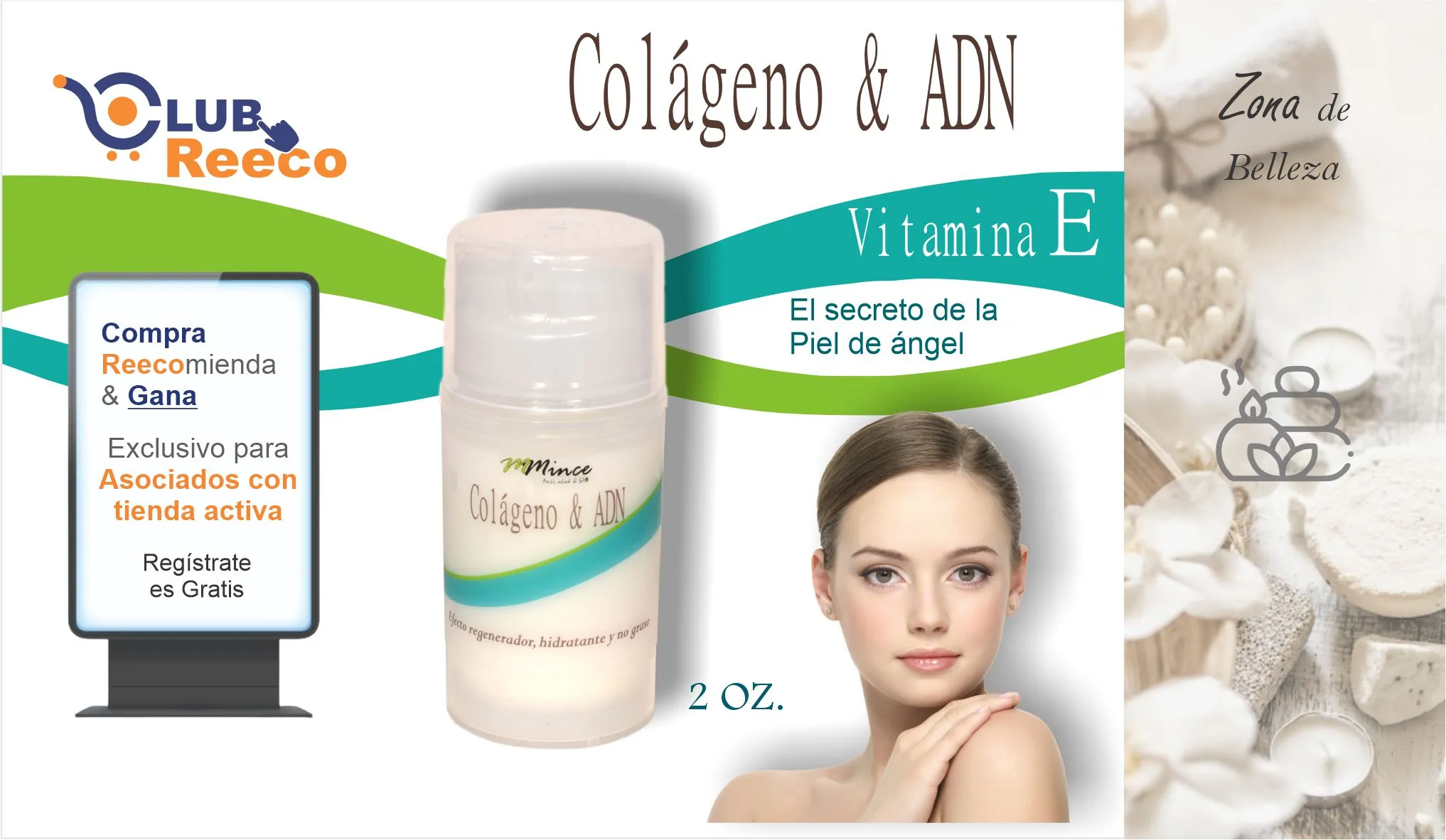 El colágeno es el componente que forma la estructura de cualquier tejido conectivo y se encarga de proporcionar fuerza a la piel, huesos, cartílagos, tendones, cabello y uñas, una de las principales características del colágeno es darle fuerza a la piel. El rostro se alisa y se reafirma visiblemente. La aplicación de colágeno & ADN, terza la piel, ayuda a restaurar la producción de colágeno y la regeneración de las células.Un producto que por su naturaleza y balance de activos nos ayuda de forma muy notable y nos devuelve esa apariencia saludable en la piel, muy recomendada para personas que sufren de resequedad extrema y personas que han sufrido alguna quemadura. |