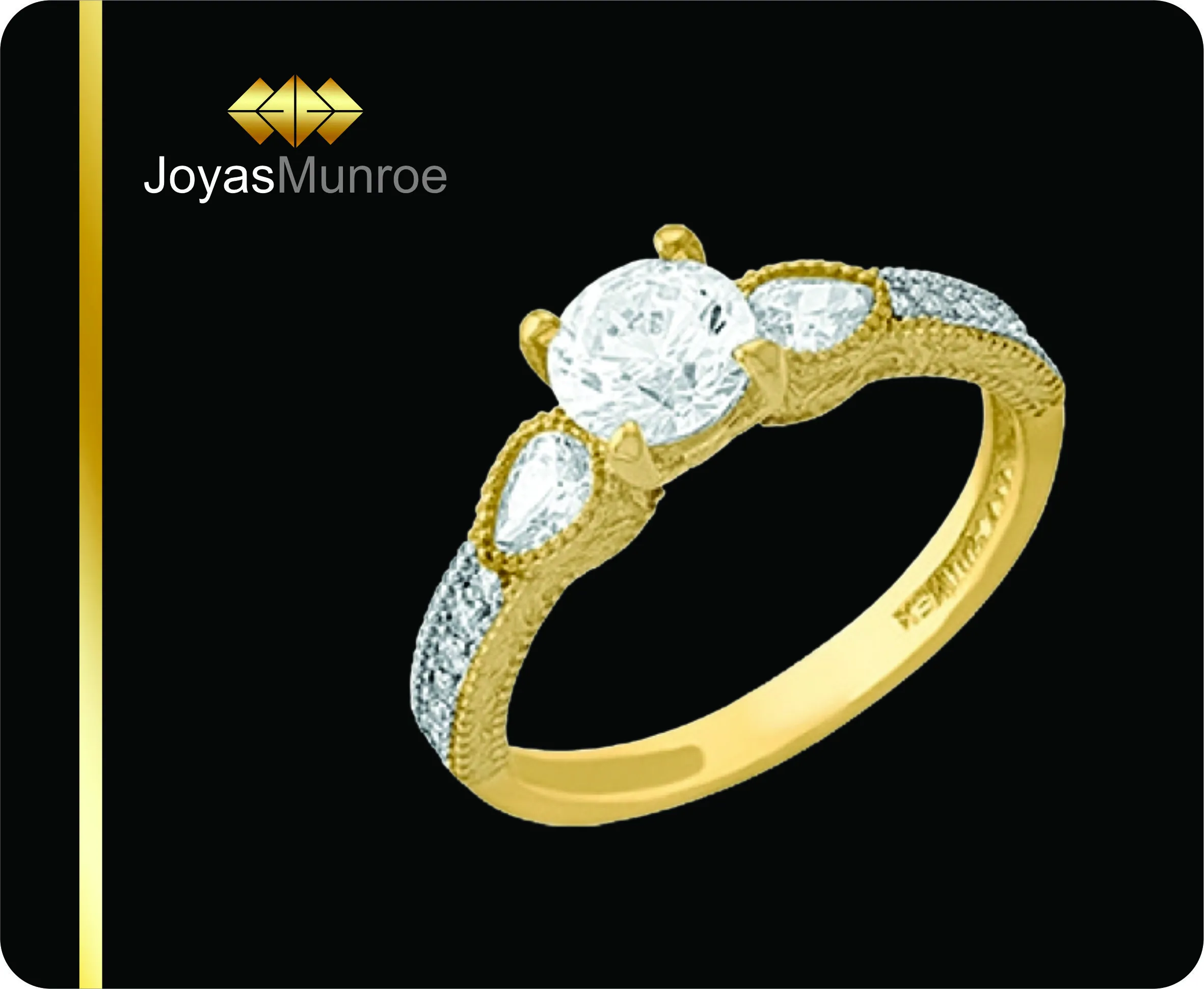 Este anillo está elaborado con oro de 10 kilates, lo que les otorga durabilidad y resistencia, además de un brillo característico. La zirconia blanca, que imitan la apariencia de los diamantes, añaden un toque de glamour y distinción a la pieza.