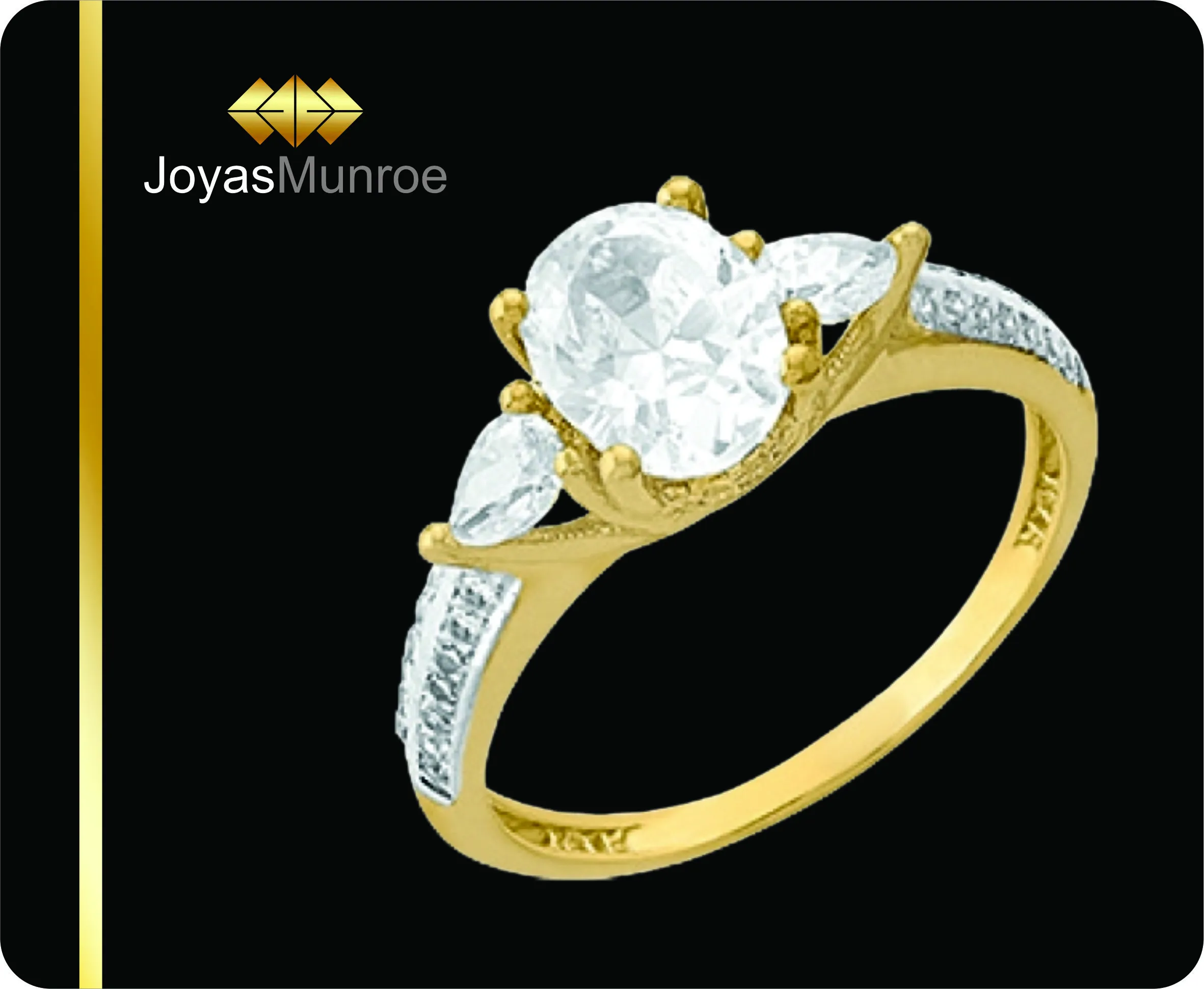 Este anillo está elaborado con oro de 10 kilates, lo que les otorga durabilidad y resistencia, además de un brillo característico. La zirconia blanca, que imitan la apariencia de los diamantes, añaden un toque de glamour y distinción a la pieza.