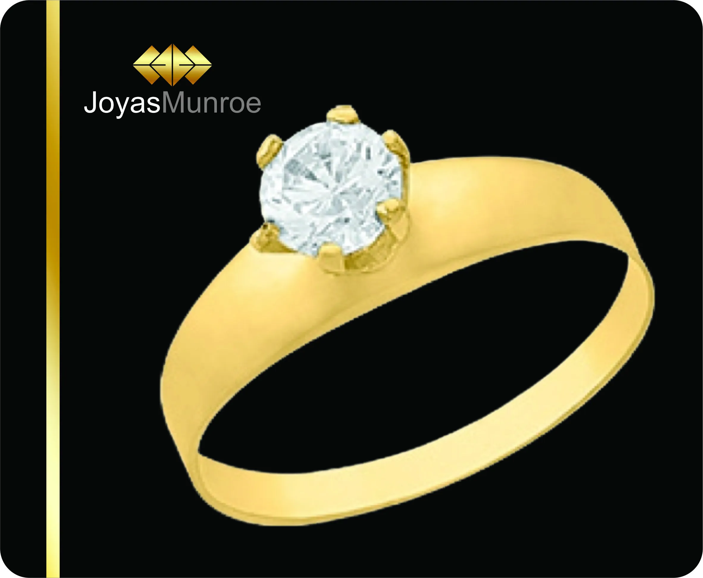 Anillo línea solitario de oro de 10 kilates con zirconia blanca.