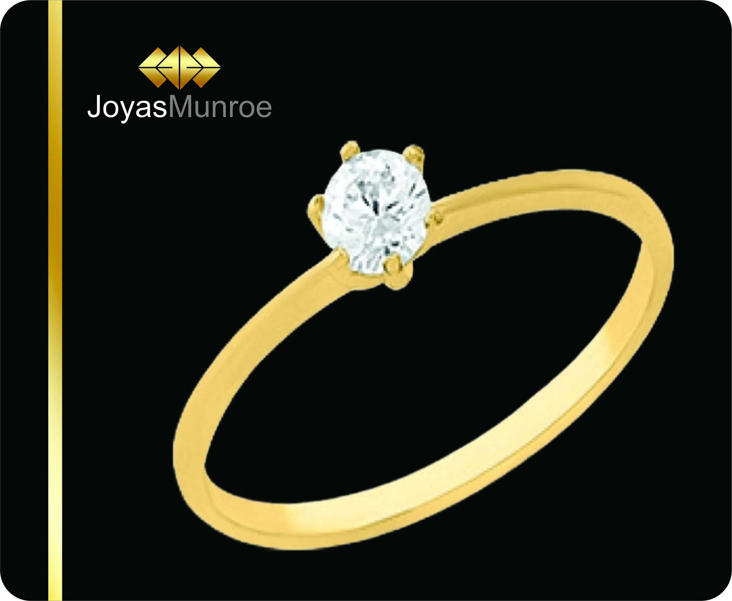 Anillo línea solitario de oro de 10 kilates con zirconia blanca.