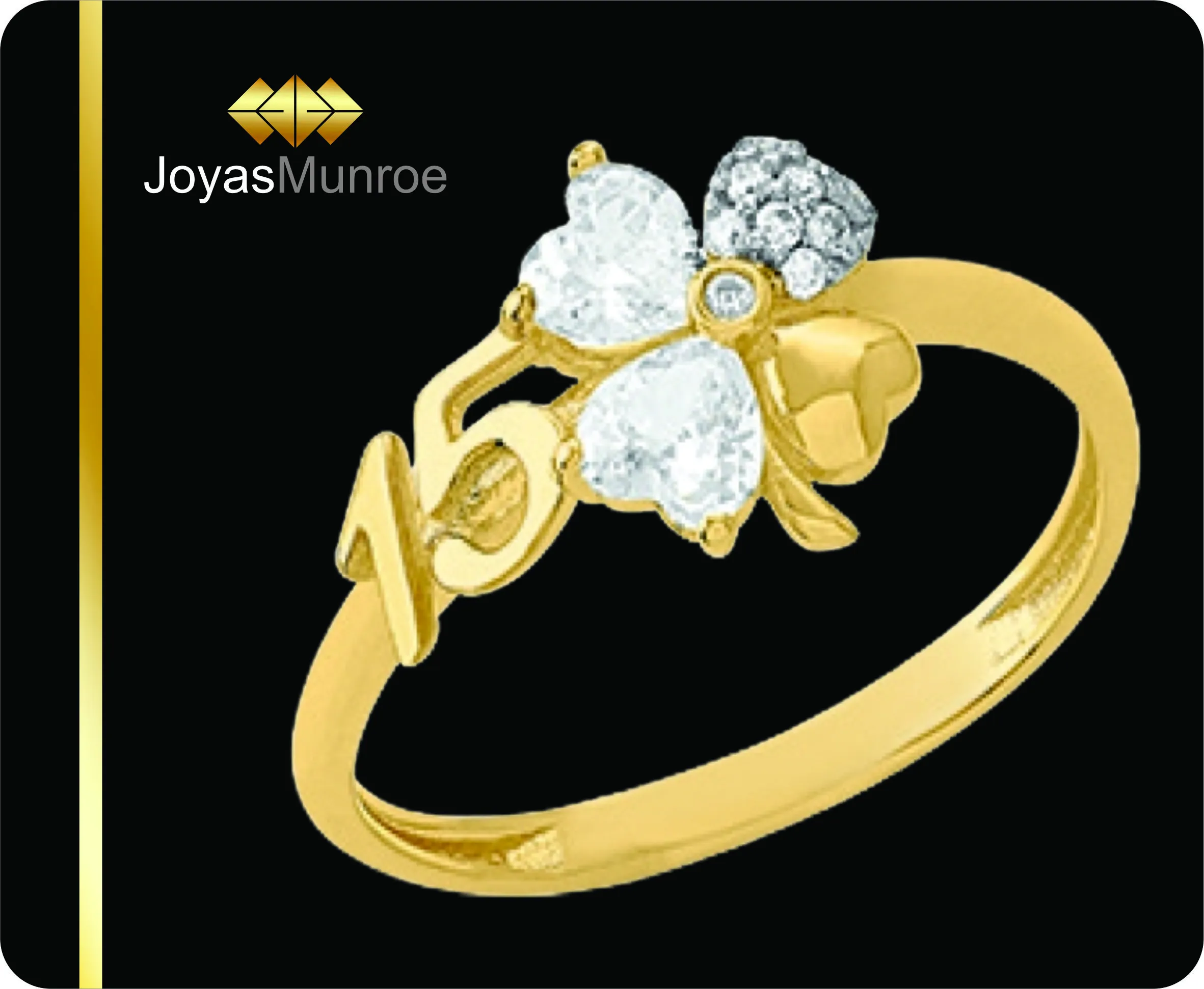 El anillo para quinceañera en oro de 10 kilates disponible en Club Reeco es una pieza exclusiva y de alta calidad, diseñada para celebrar este importante hito en la vida de una joven.