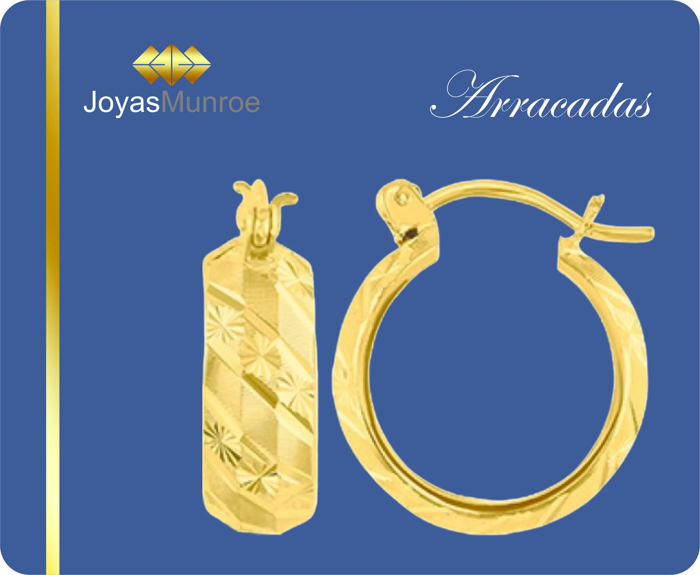 Arracadas en oro de 10 kilates, son piezas elegantes y versátiles que realzan la belleza de quien las lleva puestas.