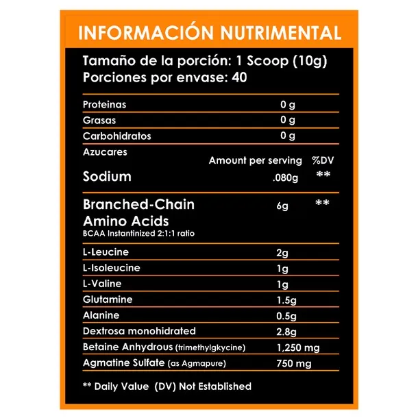 Es un suplemento en polvo que combina los tres aminoácidos esenciales de cadena ramificada: L-Leucina, L-Isoleucina y L-Valina, en una proporción óptima 2:1:1. Estos aminoácidos son fundamentales para la reparación y crecimiento muscular, especialmente durante entrenamientos intensos