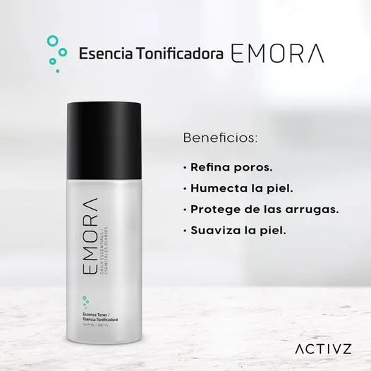 Refina los poros Refina el aspecto de los poros, ayudando a que la piel se vea más firme y juvenil. Hidrata la piel La Esencia Tonificadora EMORA ilumina y tonifica la piel, dejándola fresca e hidratada. Reduce la apariencia de las arrugas Disminuye las manchas oscuras y reduce la apariencia de las arrugas. Suaviza la piel La Esencia Tonificadora EMORA suaviza la textura de tu piel. Filtrado de fermento de Saccharomyces Un antiguo secreto de belleza de Asia que aporta belleza interior y exterior con claridad, hidratación, luminosidad y una piel de apariencia más joven.Ingrediente sutilmente potente que afina los poros y suaviza las líneas finas y las arrugas dejando una tez suave, flexible y radiante.