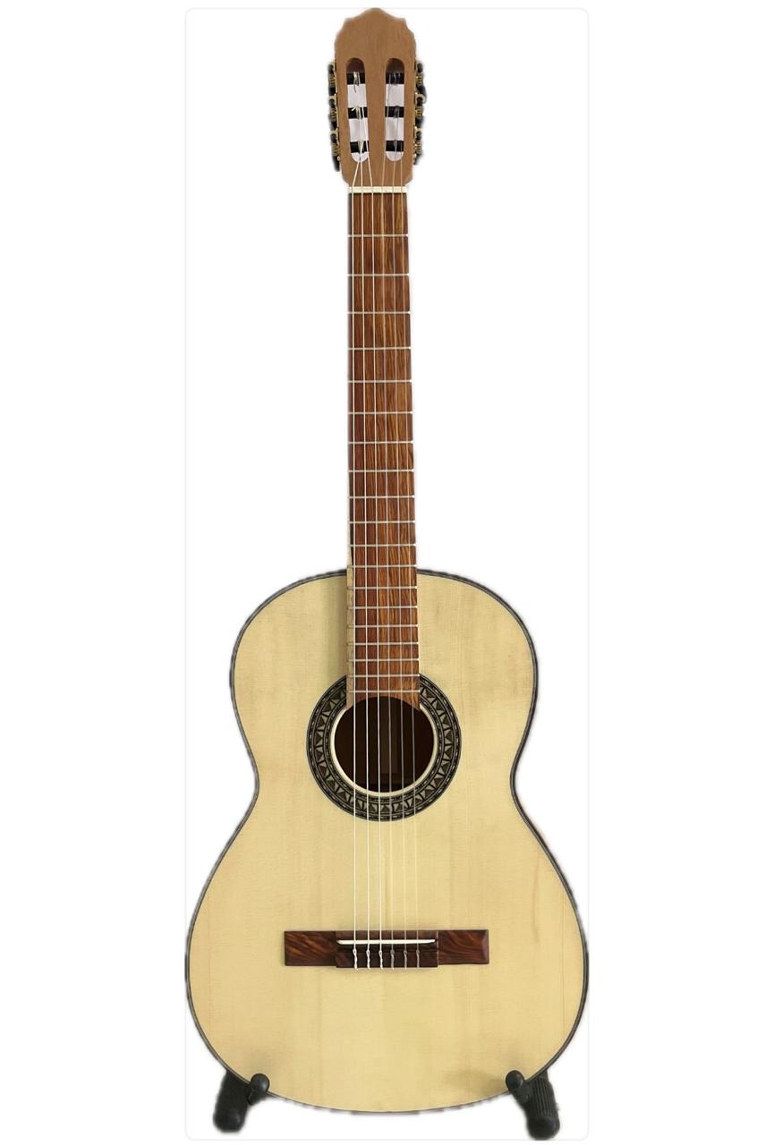 Descubre la calidez y resonancia únicas de nuestra guitarra artesanal hecha a mano con madera fina de cedro, tapa de pinabete canadiense y puente de granadillo.