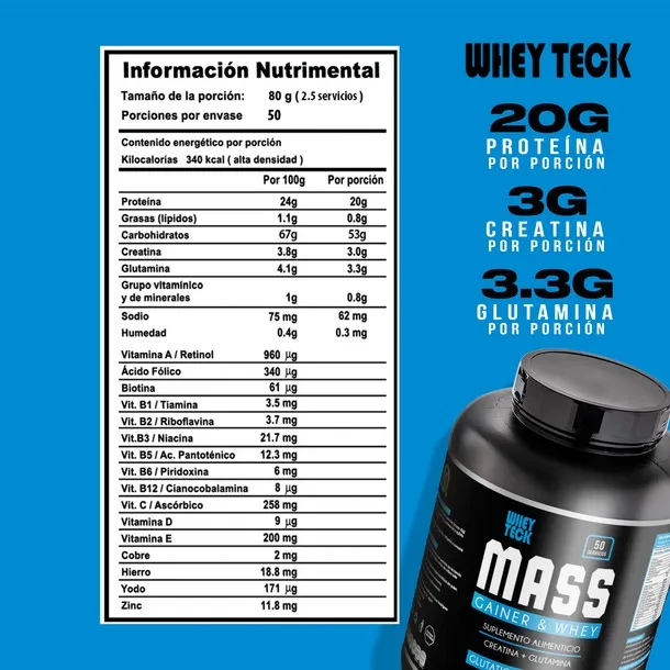 es un suplemento nutricional diseñado para quienes buscan aumentar su masa muscular de manera efectiva. Con una combinación equilibrada de proteínas de alta calidad y carbohidratos complejos, este producto ofrece una fuente concentrada de calorías para apoyar el crecimiento muscular.