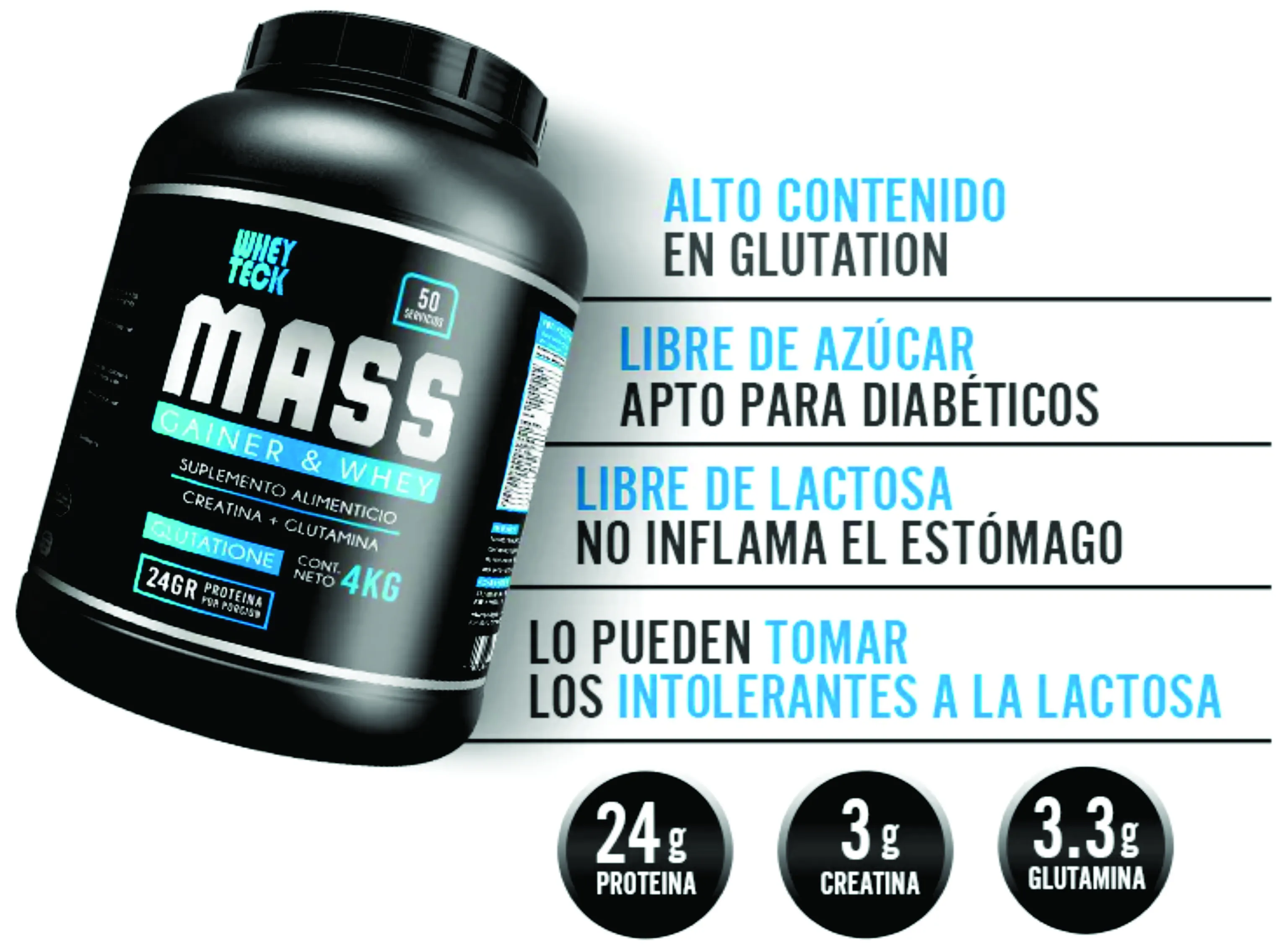 Fórmula elaborada con selecta mezcla de carbohidratos complejos de lenta asimilación, concentrado de proteína, creatina y glutamina, que mejora el nivel de absorción, logrando una ganancia y un óptimo tono muscular.