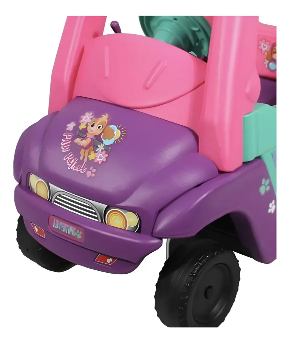 -DISEÑO:inspirado en el personaje skye de paw patrol con colores rosa y morado. -EDAD RECOMENDADA:ideal para niños de 19 a 36 meses. -CARACTERISTICAS:claxon,puerta funcional, tapa de gasolina y reposapies extraible. -FUNCIONALIDAD:cuenta con piso removible para que los niños puedan impulsarse con sus pies. |