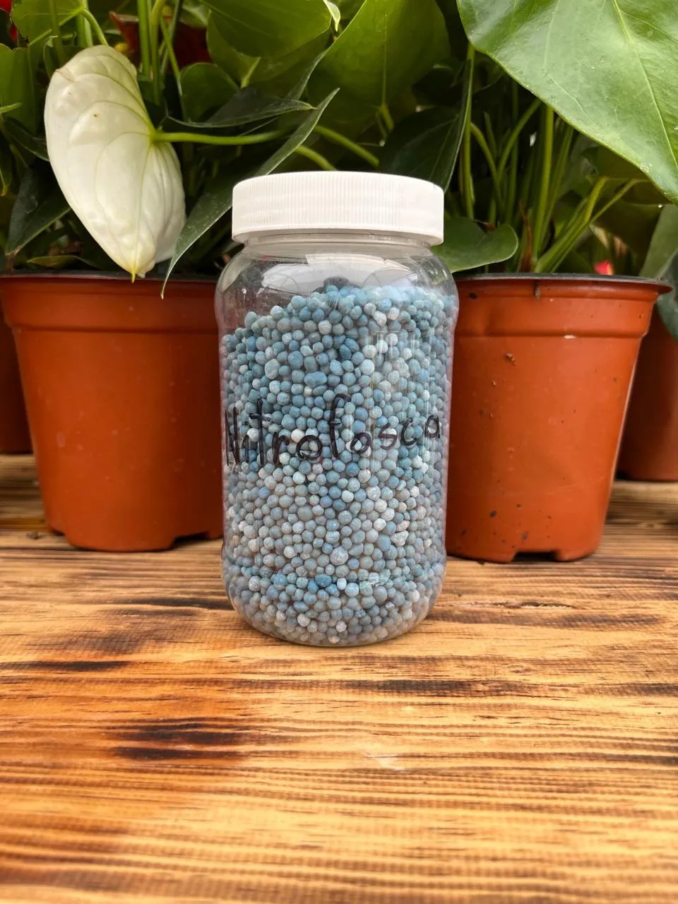 1 kg de Nitrofoska azul PLANTAS / DOSIS / FREC. DE APLIC. Árbol ornamental o frutal / 100 a 200 g por cada 2.5 cm de diámetro de grueso de tronco / Cada 4 semanas Césped / 50 a 100 g por m² / Cada 4 semanas Macetas de 5 L / 10 g / Cada 4 semanas Macetas de 10 L / 20 g / Cada 4 semanas Macetas de 20 L / 30 g / Cada 4 semanas Hortalizas / De 100 a 150 g por metro lineal / A la siembra y a la mitad de ciclo de cultivo |