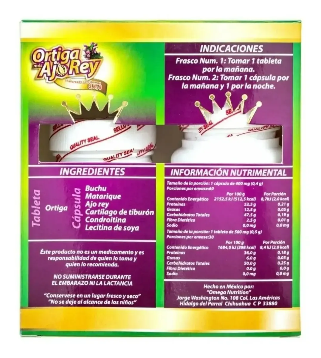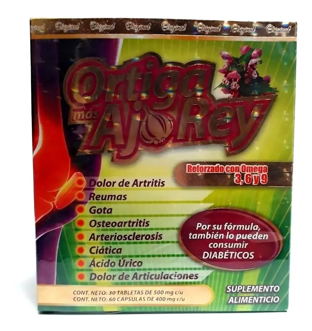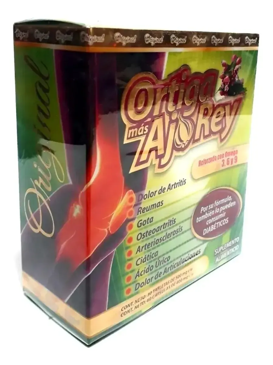 | Ortiga Más Ajo Rey 30 tabletas y 60 cápsulas Suplemento Alimenticio con Omega | |