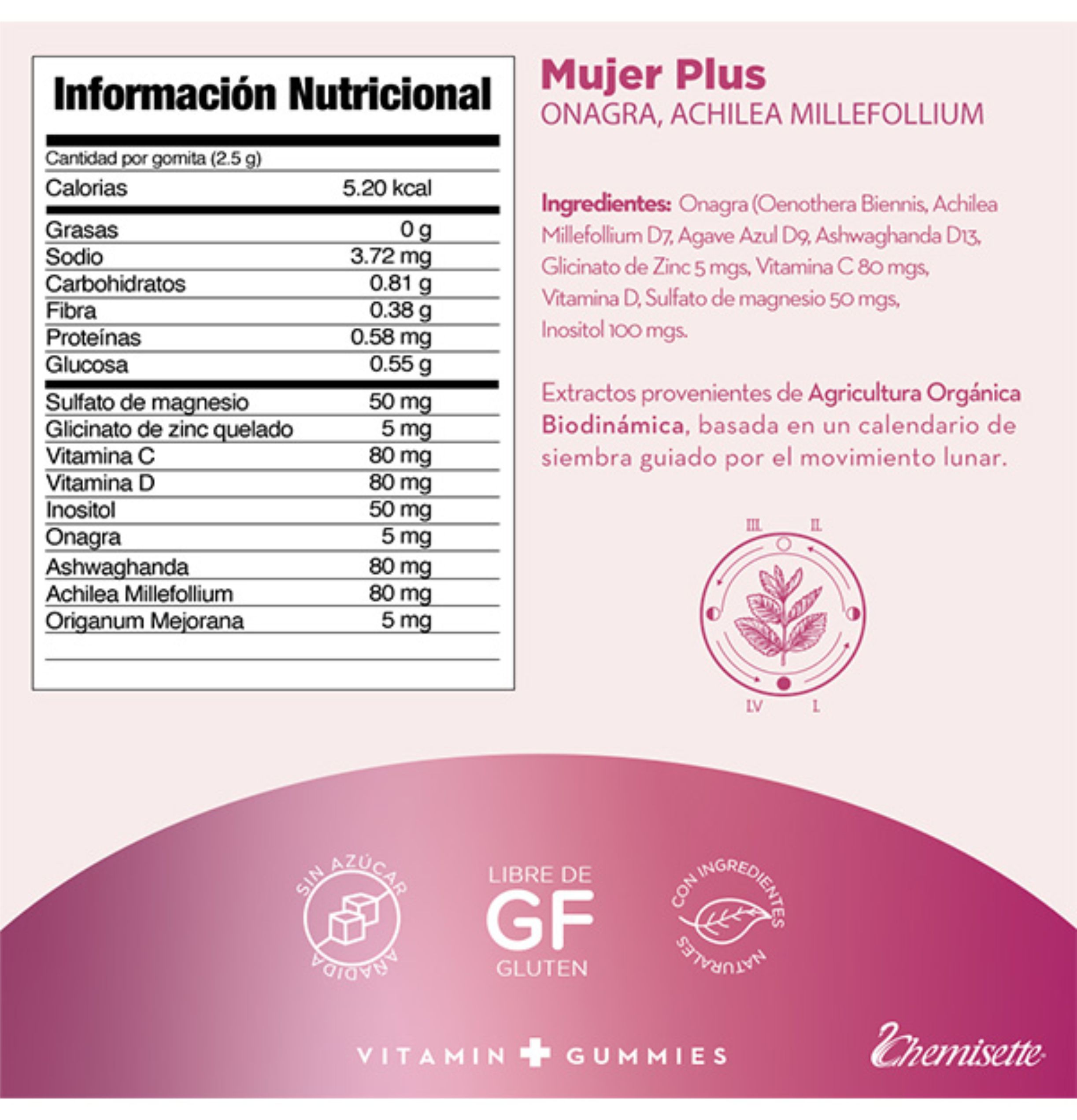 BENEFICIOS: - Modula los síntomas asociados a la menopausia, incluyendo la amenorrea y la disconfort abdominal. - Alivia manifestaciones clínicas como los sofocos, las sudoraciones nocturnas, la atrofia vaginal y xerosis cutánea. - Facilita la regulación de los niveles hormonales, interviniendo en las alteraciones del estado de ánimo, los cambios emocionales y la fatiga. MODO DE USO: Durante la menopausia, se recomienda tomar 2 gomitas 3 veces al día. En situaciones de desánimo, se puede consumir 1 gomita cada hora. |