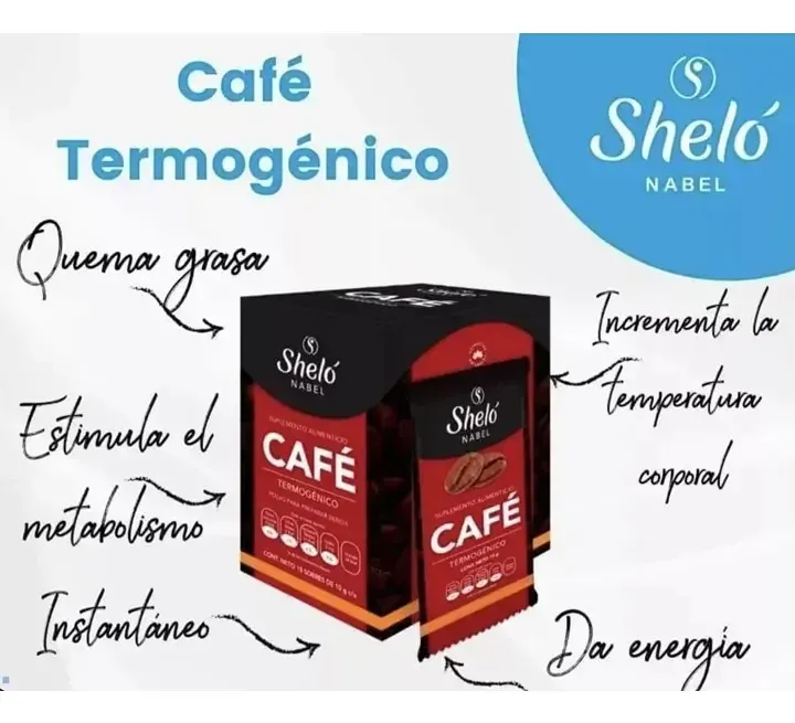 Beneficios: INCLUYE 1 CAJA CON 15 SOBRES Quema grasa y baja de peso rápidamente Lo pueden consumir diabéticos Lo pueden consumir hipertensos Regular tu flora intestinal. Controlar tu peso Reducir medidas. Regular los niveles de glucosa en la sangre. Aumentar la utilización de las grasas acumuladas como reserva. Activar la termogénesis del cuerpo, ayudándote a quemar más calorías. Cuidar tu organismo de manera natural Descubre el Café Soluble Termogénico de Sheló Nabel, un producto que combina sabor y beneficios para tu bienestar. Cada sobre contiene 10 gramos de café de origen mexicano, con un nivel de tostado medio que resalta su dulzura natural. Diseñado para aquellos que buscan una opción orgánica y deliciosa, este café es perfecto para incorporar en tu rutina diaria. El aroma envolvente y el regusto dulce de este café soluble transformarán tus momentos de pausa en una experiencia placentera. Ideal paraActivar tu metabolismo, este café es un aliado en tu camino hacia un estilo de vida saludable, brindando un toque especial a cada preparación. Disfruta de una bebida lista en segundos, perfecta para los que tienen un estilo de vida acelerado. Con 15 sobres en cada paquete, el Café Soluble Termogénico te ofrece conveniencia y calidad en cada taza. Aporta energía de forma natural, ideal para iniciar tus días o como acompañante en tus actividades cotidianas. Opta por un café que no solo satisface tu paladar, sino que también respeta el medio ambiente con su cultivo orgánico. |