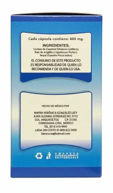 Copangel es un suplemento dietario que combina ingredientes naturales como corteza de copalchi y raíz de angélica, formulado como apoyo para el bienestar digestivo. Uso sugerido: Tomar 2 cápsulas después de cada comida. |