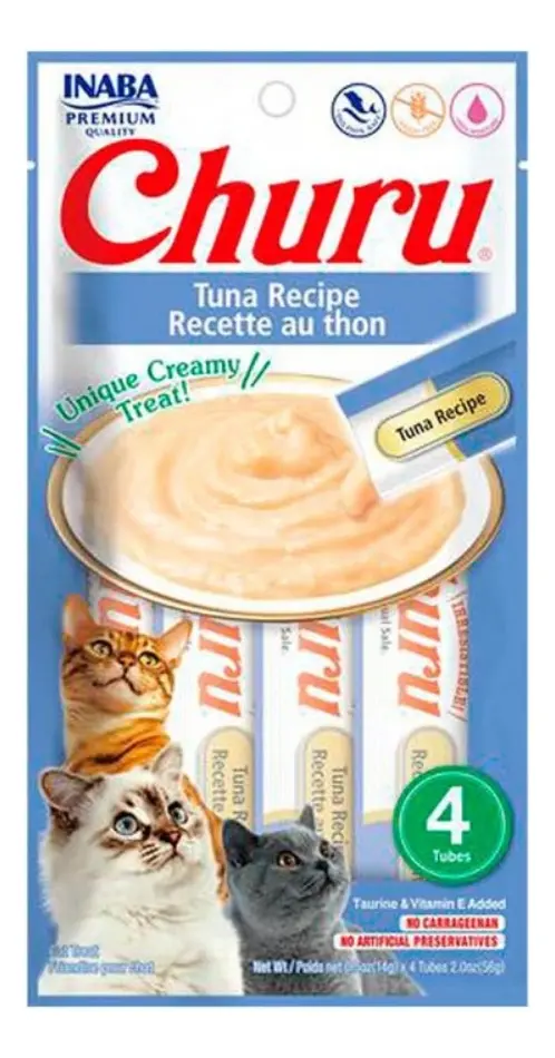 El secreto de Churu, que lo convierte en la golosina favorita de los gatos, son los ingredientes 100% naturales de grado humano. Su carne se deriva de pollo criado naturalmente en granjas supervisadas de cerca, con atún de aguas profundas cosechado de forma sostenible y certificado como dolphin safe. Más hidratación: Es un alimento especialmente creado para la pérdida de líquidos que pueda tener tu gato, para aquellos que están enfermos o deshidratados Bajas calorías: Con sólo 6 kcal por tubo, contiene una décima parte de las calorías de los snacks secos ¡Muy saludable! Cada paquete contiene 4 tubitos de 14 gr c/u (Total 56 gr). No sustituye la comida. Se puede dar directamente desde el tubo, en el plato o sobre la comida seca. Una vez abierto, mantener refrigerado Las ventajas de este producto son: Más Hidratación: Es un alimento especialmente creado para la pérdida de líquidos que pueda tener tu gato, para aquellos que están enfermos o deshidratados Libre de Granos: Esté producto es libre de granos, sin conservantes ni colorantes. Sabor a Atún y Ostión: Cuenta con exquisito sabor a atún y Ostión que le encantará. Cremoso: Con textura cremosa, fácil de ingerir. Perfecto para lamer desde el envase. Puré de textura cremosa con altos niveles de humedad para una salud óptima de felinos. Simplemente abre el tubo y aprieta un poco para alimentar a tu gato ya sea a mano, en su plato o lo puedes usar como un sabroso aderezo en alimentos húmedos o secos. Ideal para acompañar medicamentos El Churu Atún y Ostión no sustituye a la comida. Se puede dar directamente desde el tubo o sobre el plato de comida seca. Mantener refrigerado una vez abierto |