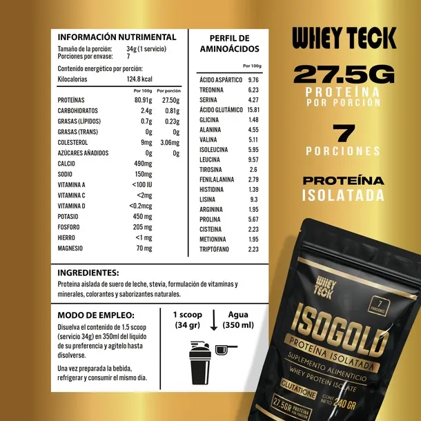 Inicio | Whey Teck | ISOGOLD SOBRE 240 GR