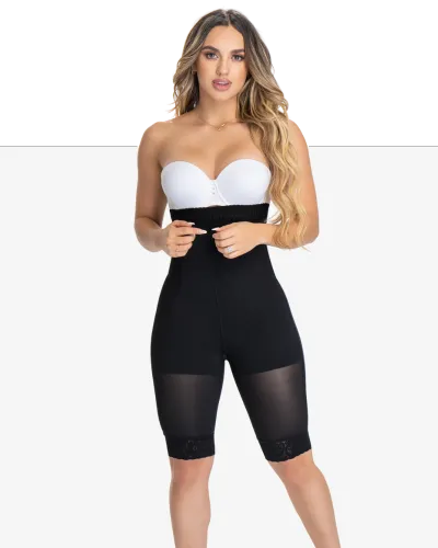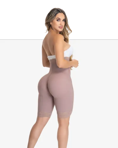 Short levanta glúteos que moldea y estiliza la silueta, con excelente ajuste y control del abdomen bajo, esta elaborado en powernet, cuenta con encaje siliconado en la parte de la cintura que no se enrolla, broches de tres posiciones que se ajustan a la silueta brindando mayor comodidad y ajuste, lleva una banda siliconada en la pierna que no se marca al utilizar prendas ajustadas, delicado diseño en la parte posterior que realza y moldea los glúteos haciendote lucir mas esbelta, realzando tus curvas.