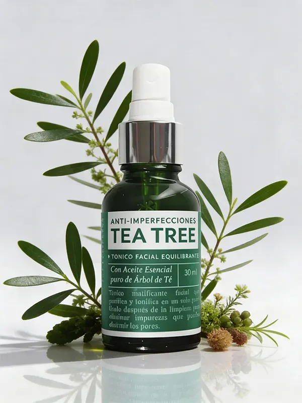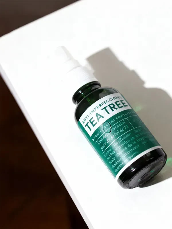TÓNICO FACIAL EQUILIBRANTE TEA TREE (Anti-imperfecciones) COMPOSICIÓN: Aceite Esencial de Tea Tree, Agua, Propilenglicol, Alantoina, Mentol, Alcohol Etílico, Ácido Glicólico, Twin20 y Symsave. BENEFICIOS: - Tónico que minimiza los poros y deja la piel limpia, fresca, tonificada y visiblemente más clara. - Controla el exceso de brillo facial. - Equilibra el pH del rostro. MODO DE USO: - Aplique con un algodón 2 veces al día sobre el rostro después de la limpieza facial. - Úsalo con el resto de la línea de Tea Tree.