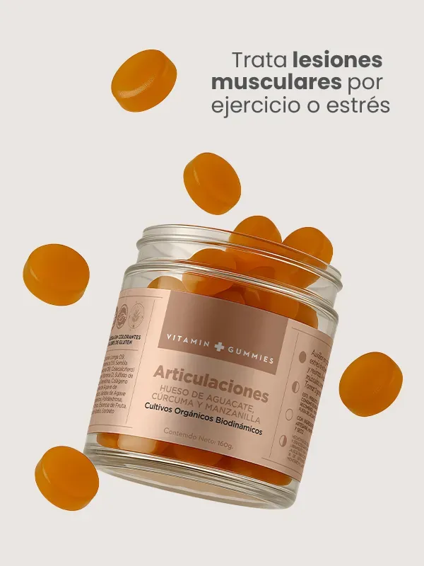 BENEFICIOS: Ayudan a tratar diariamente el dolor y la inflamación en las articulaciones. Auxiliar en contracturas por estrés o esfuerzo físico, para desinflamar músculos, tendones y cartílagos. Contiene propiedades antiinflamatorias y antioxidantes que estimulan la regeneración de tejidos. Hechas con Hueso de Aguacate, Cúrcuma vivificada y Manzanilla Biodinámica. MODO DE USO: Masticar 2 gomitas 3 veces al día. |