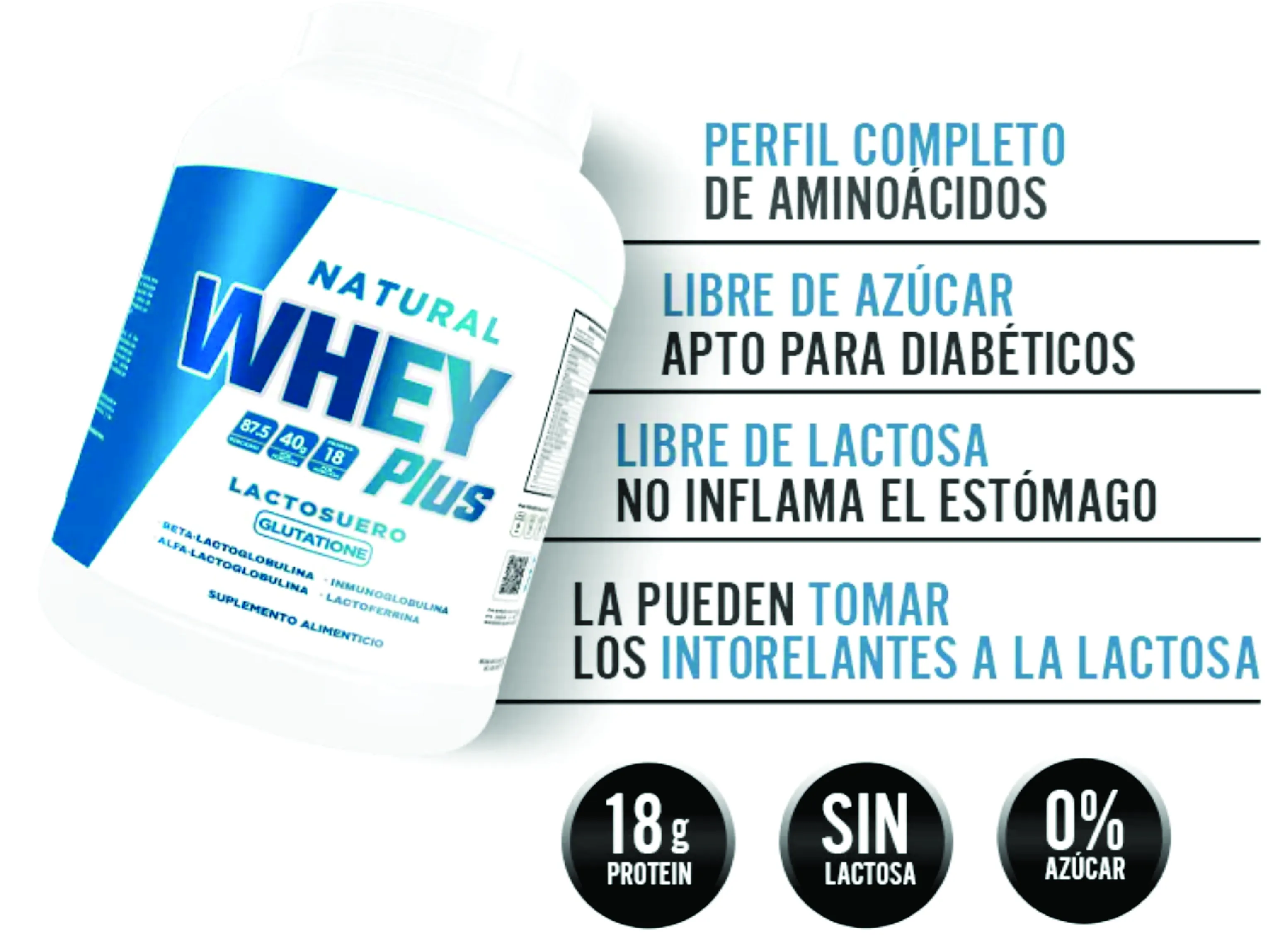 Fórmula desarrollada para toda la familia, está diseñada para fortalecer el sistema inmunológico, enfocada en el mantenimiento y la recuperación del cuerpo humano. Whey Plus cuenta con un perfil completo de aminoácidos esenciales de cadena ramificada, un alto contenido de Glutatione junto con Beta-Lactoglobulina, Alfa-Lactoalbúmina, Inmunoglobulinas, Lactoferrina y Vitaminas y Minerales. Esta fórmula sin azúcar y libre de lactosa te brinda 18 gramos de proteína en cada porción. Tiene un sabor deliciosamente irresistible que será toda una experiencia culinaria sin igual en tu paladar. Whey Plus es una proteína de suero de leche de alta calidad, formulada para quienes buscan optimizar su rendimiento físico, acelerar la recuperación muscular y mejorar su composición corporal. Con una mezcla de aislado, concentrado e hidrolizado de suero, esta fórmula avanzada ofrece una absorción rápida y eficiente. Enriquecida con glutamina y leucina, esenciales para la síntesis de proteínas y la recuperación muscular. INGREDIENTES: 45% de concentración de proteína Alto contenido de glutation (antioxidante) Endulzado con stevia Lactoferrina Inmunoglobulina Alfa-lactoalbumina Beta-lactoglobulina |